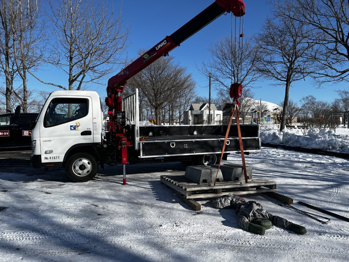 ユニック車や救出用資材を提供していただいた、萬木建設株式会社様に感謝申し上げます。
