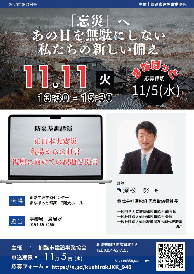 ~「忘災」へ あの日を無駄にしない 私たちの新しい備え ~ をテーマに 講演致します。 有益な機会となりますよう是非多くの参加をお待ちしております。